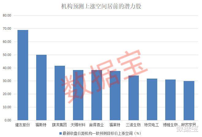 数据宝进一步统计发现,上述18只个股中,健友股份、福斯特、旗滨集团最新收盘价距机构一致预测目标价上涨空间均超40%。